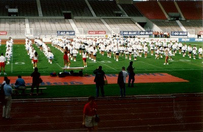 Razvoj plesnih (pom-pon) in navijaških skupin, kakršne poznamo v ZDA, se je v Sloveniji začel prav s tekmovanjem Šolska košarkarska liga. Začetki so bili seveda težki, saj nismo imeli strokovnega kadra, ki bi lahko prenašal znanje na mlade. Vodenje tega dela tekmovanja je prevzela dr. Meta Zagorc, znanje prinešeno iz ZDA pa je na mlade v prvi sezoni prenašala Vesna Vukovič. Organizirali smo tudi številne seminarje, na katerih so nekaj let zapored sodelovali vrhunski ameriški vaditelji (Joni Shaw, James Speed, Joe Soley, Shantel Wood, Kathleen Ford, Natalie Voight …) in kmalu so skupine zelo napredovale. Prvega mednarodnega tekmovanja so se slovenske skupine udeležile ob koncu šolskega leta 1996/97, in sicer v nemškem Stuttgartu in takoj poskrbele za presenečenje in zmago. Ob tekmovanju se je sestal tudi mednarodni odbor in ustanovil evropsko mednarodno združenje ECA, katerega član je postal tudi Zavod ŠKL. Skupine so iz sezone v sezono napredovale in navduševale ne le na tekmah ŠKL, ampak tudi na različnih kulturnih in športnih prireditvah. Leta 1999 je bila ustanovljena Zveza navijaških in pom pon skupin Slovenije, ki je od Zavoda ŠKL prevzela članstvo v združenju ECA ter v mednarodnem združenju ICF ter skrb za izobraževanje in tekmovanja na ravni društev in klubov, v domeni Zavoda ŠKL so ostala šolska tekmovanja. In med te se je v šolskem letu 1999/2000 uvrstilo še tekmovanje akrobatskih navijaških skupin, ki sodi med najbolj privlačne.